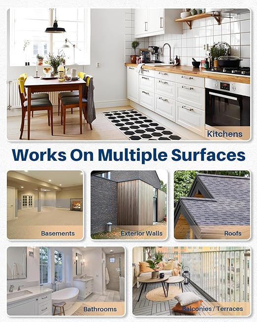 - 【Long-Lasting, Flexible Liquid Seal】This waterproof glue sealant clear offers excellent film-forming properties and exceptional adhesion. Resisting substrate deformation, its self-leveling formula effortlessly fills and penetrates small gaps and cracks, creating a resilient, liquid waterproof sealant barrier.