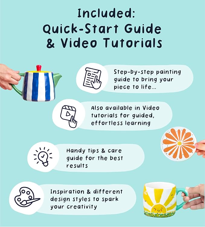 - Perfect for beginners, gift givers or anyone looking to spend creative time with friends or loved ones. Pick up a brush, paint, set it in the oven and pour your next cup of tea from something you made yourself.
