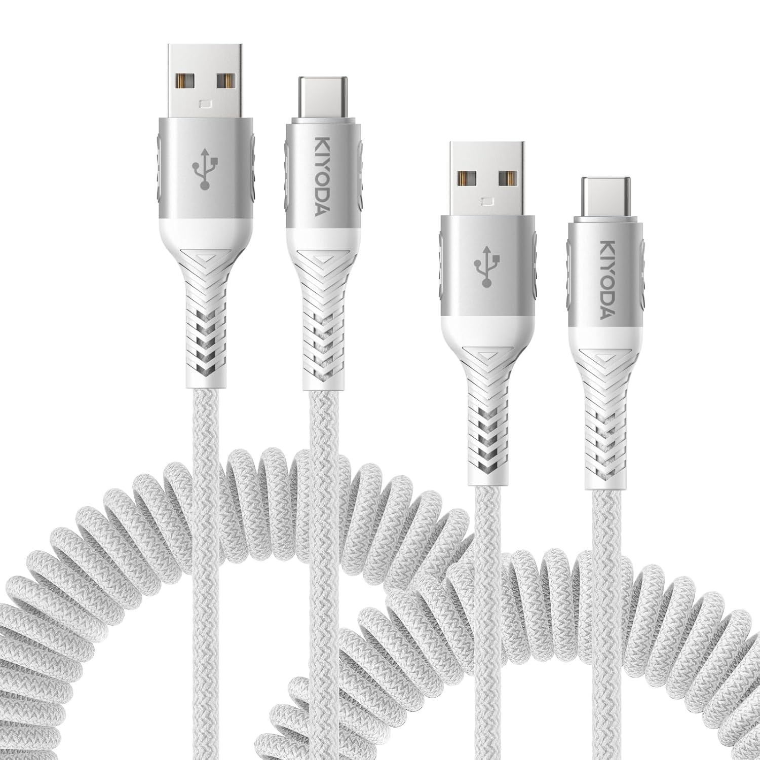 Coiled USB to USB C Cable 6FT, 2Pack Braided USB A to Type C Charger Cable for Car 66W Fast Charging Cord Compatible with iPhone 16 15 Pro Max, iPad, Samsung Galaxy, Google Pixel, LG Phones-Silver