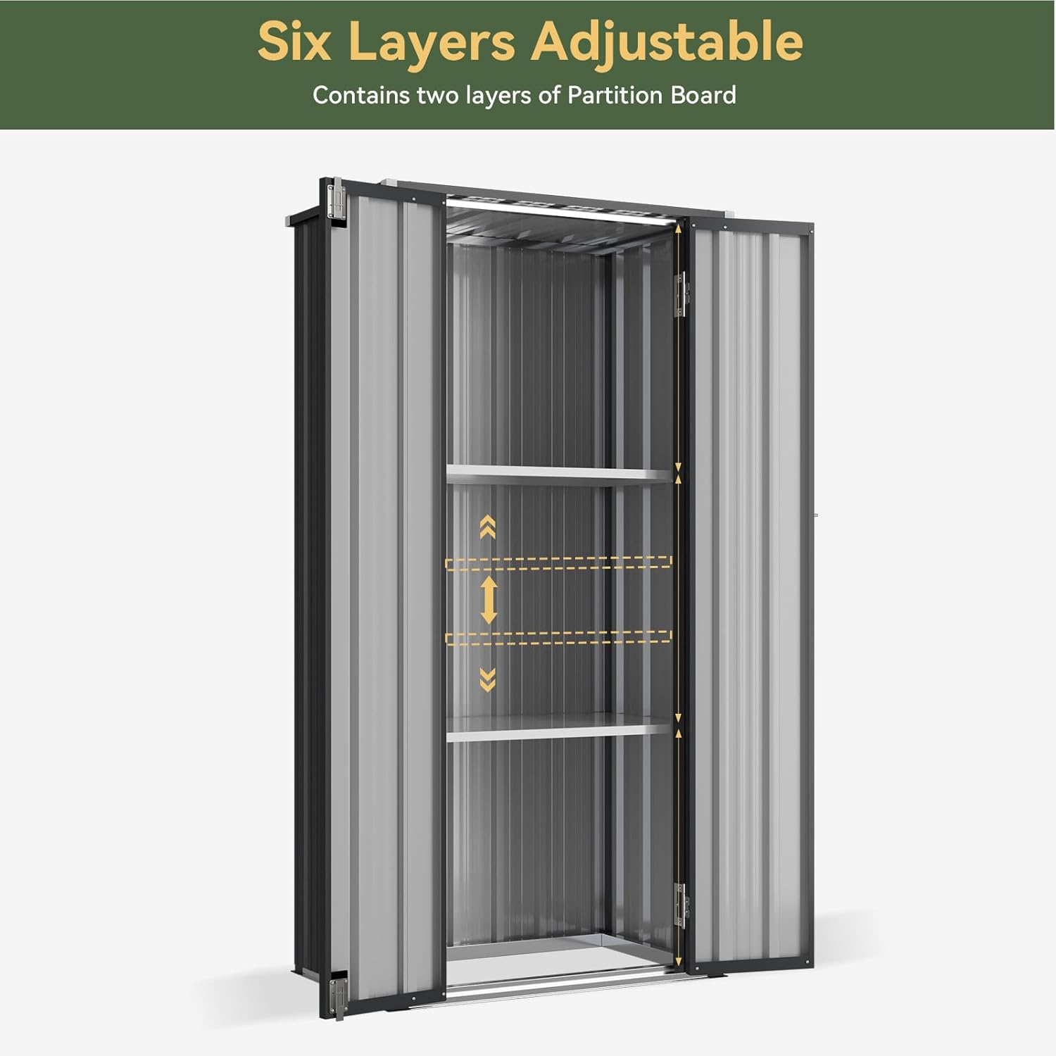 - Long-Lasting All-Weather Protection: Crafted from heavy-duty galvanized steel, this weatherproof outdoor storage cabinet withstands rain and sun. It serves as a waterproof metal vertical storage shed, providing reliable, year-round defense for tools, gardening essentials, or seasonal items, with resin-like durability for outdoor resilience.