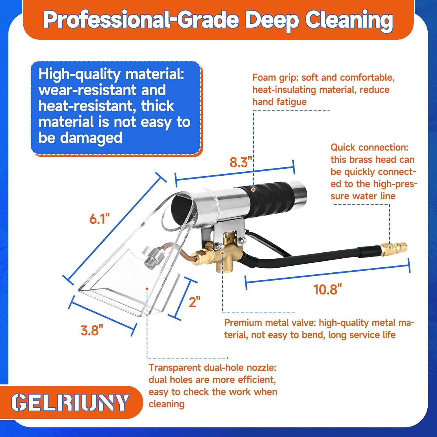 - Professional-Grade Deep Cleaning: Dual-hole cleaning head and 1.5-inch I.D., 10-foot-long vacuum hose, suction power comparable to a professional carpet cleaner, easily removes deep stains from carpets, fabric furniture, and car seats, and the transparent head design allows real-time observation of the cleaning effect