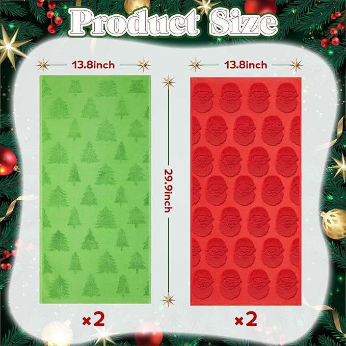 - Festive Christmas Charm: Celebrate the season with our christmas tree and Santa Claus hand towels, designed in crisp white and dark or deep green with a raised christmas tree and Santa face pattern. The suitable winter accent to elevate any bathroom or kitchen space during the holidays