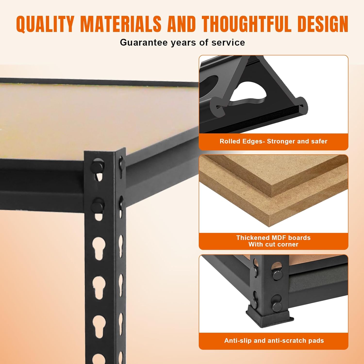 - Safe & Sturdy Rolled Edge Design: Say goodbye to the low quality and easy scratching of single layer post shelves. The boards cut corners and rolled edge design of the metal column is not only thicker and better quality of the column, but also protect your hands from scratches. This thoughtful design makes this garage shelf the best choice whether you use it for yourself or give it to a friend!