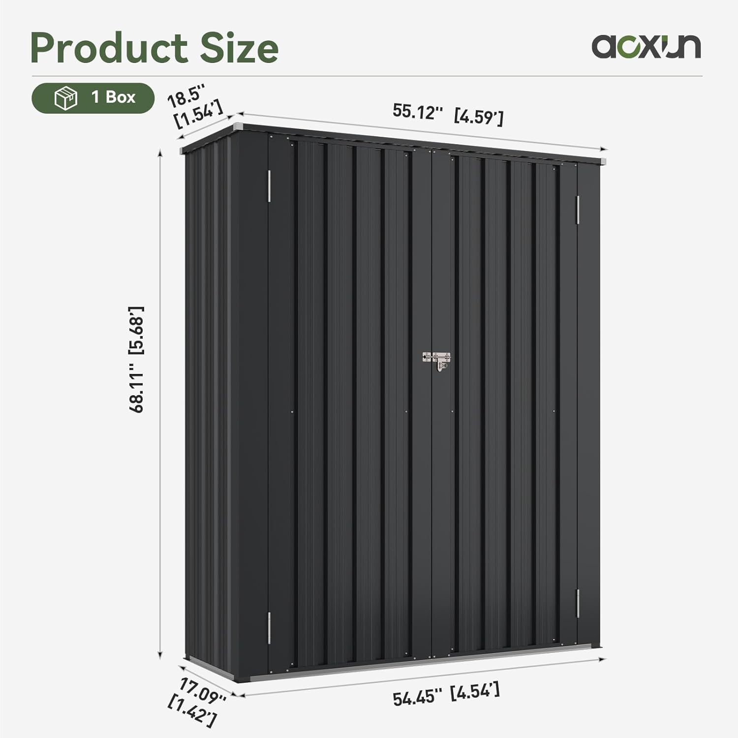 Aoxun 55x19 in Outdoor Storage Cabinet Metal Garden Shed with 2 Adjustable Shelves 3 Layer Indoor& Outdoor Waterproof Vertical Storage Shed for Patio Garden, Garage, Porch (Black, 40 Cu.Ft)