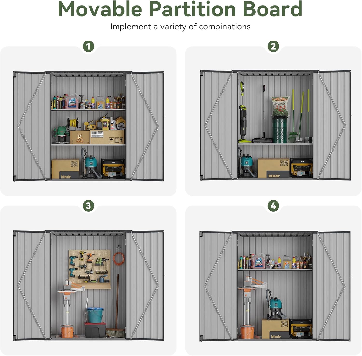 - Customizable & Sturdy Shelving System: Experience ultimate flexibility with this outdoor cabinet’s adaptable shelving. It includes 2 removable shelves, each supporting up to 75 LBS, ideal for organizing heavy items like power tools, paint cans, and gardening gear. Easily tailor the layout in this vertical storage shed to meet your specific storage needs.