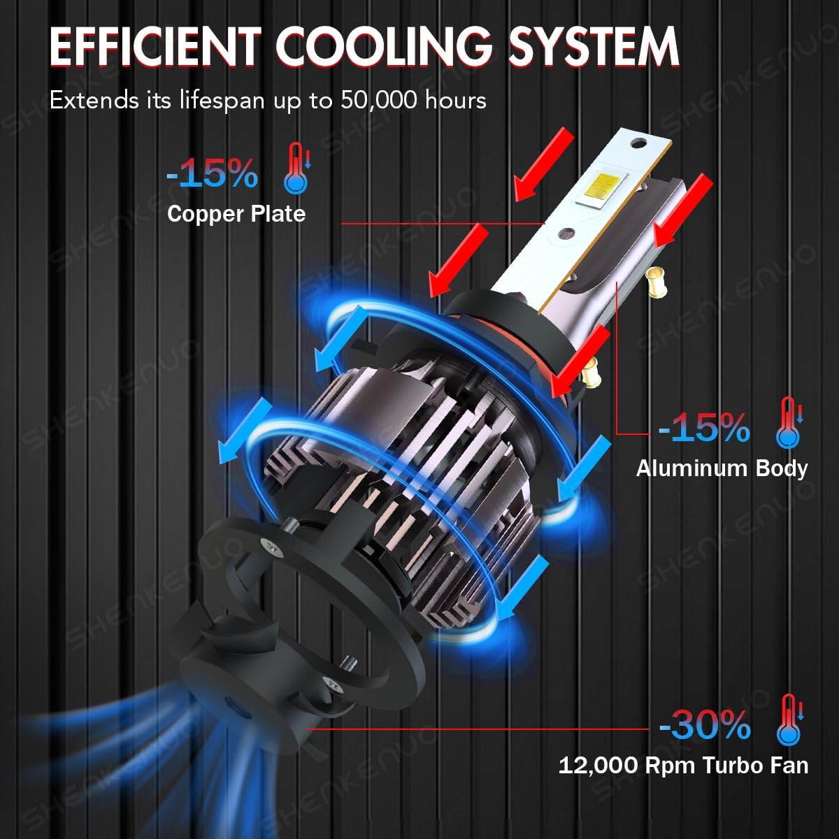 - [Waterproof and dustproof,durable and reliable]:Adopting IP68 waterproof and dustproof design,the car lights can easily cope with various harsh environments,such as rain,snow,muddy roads,etc. The sturdy casing and high-quality cooling system ensure stability and reliability even after long-term use,safeguarding your every journey