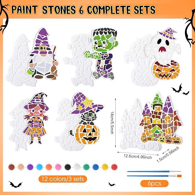 - Suitable for Halloween Celebrations: this mosaic paint crafts kit is ideal for Halloween DIY activities, bringing the spooky spirit to your holiday celebrations; Create fun Halloween characters to decorate your garden or home; Each figurine sizes in about 5.5 x 4.96 x 0.56 in