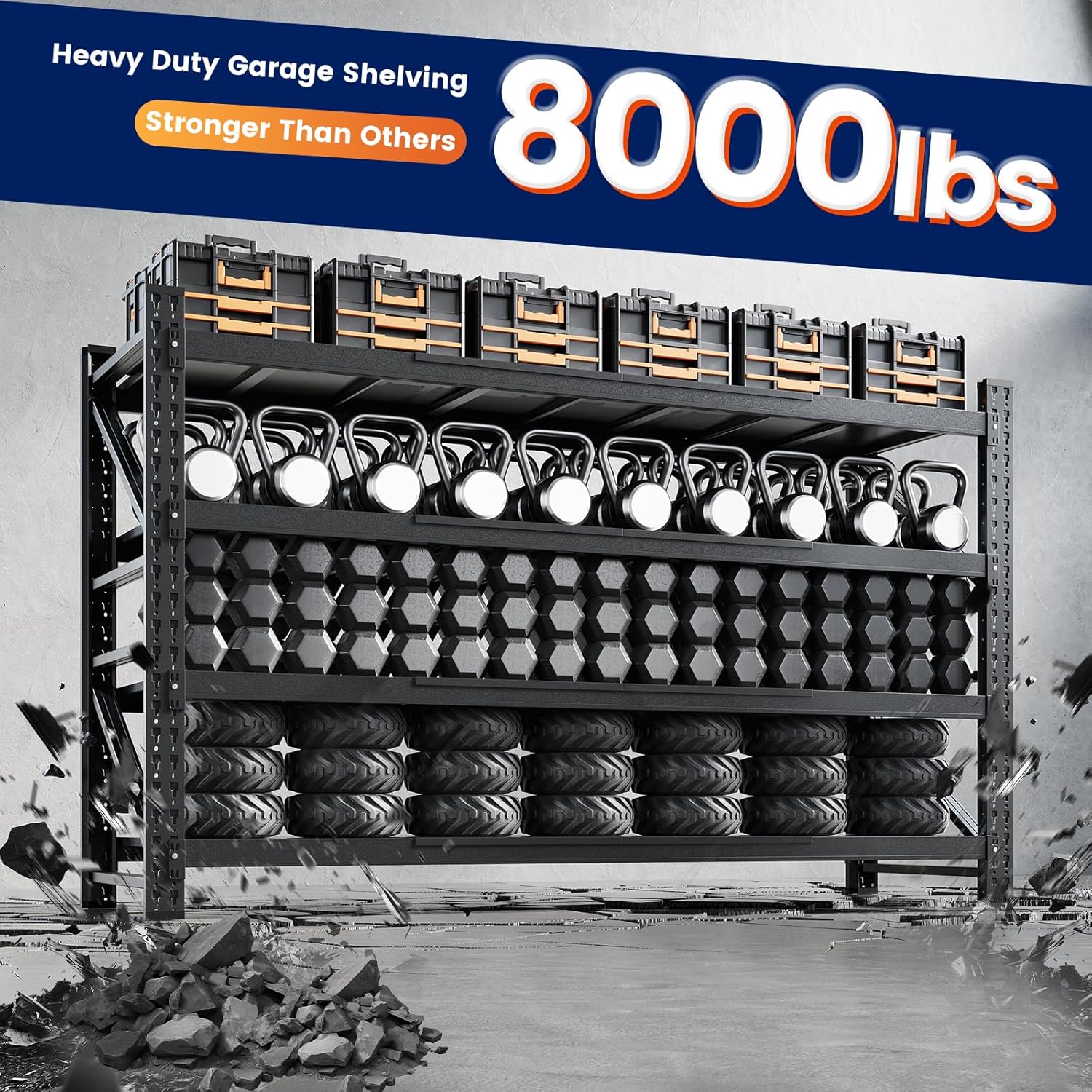 - ăSturdy DesignăThe garage shlelving units reinforced diagonal braces designs,its could evenly distribute the weight,features reinforcing ribs for added strength,ensuring strong stability and resistance to deformation.
