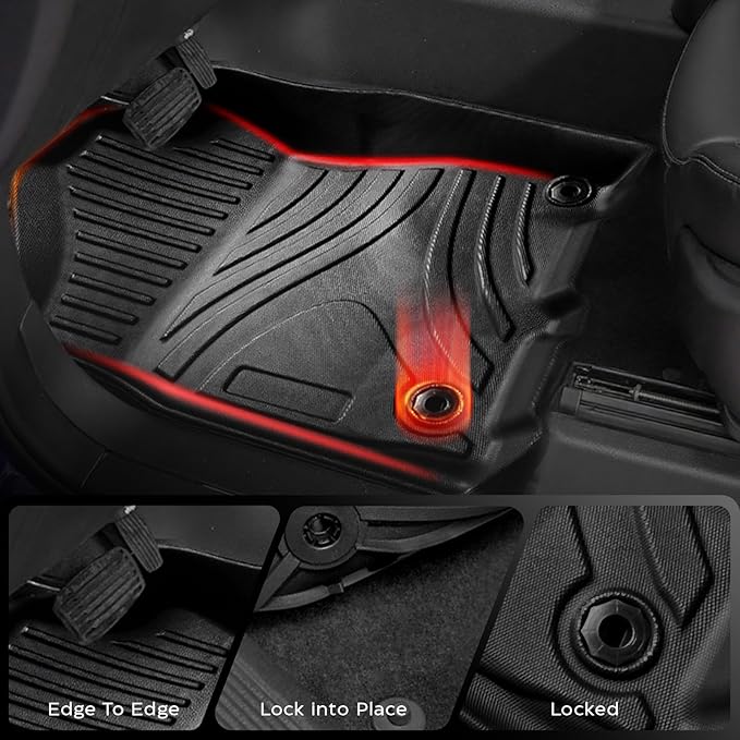 - 【Considerately Designed】Our deep groove channels actively funnel liquids and debris away from your feet and to the bottom of the mat. The snap clip on the back ensures the mat stays firmly in place, preventing dangerous sliding under the pedals. Features high lips and deep channels that trap water, dirt, sand, and slush right where it belongs—on the mat, not your carpet.