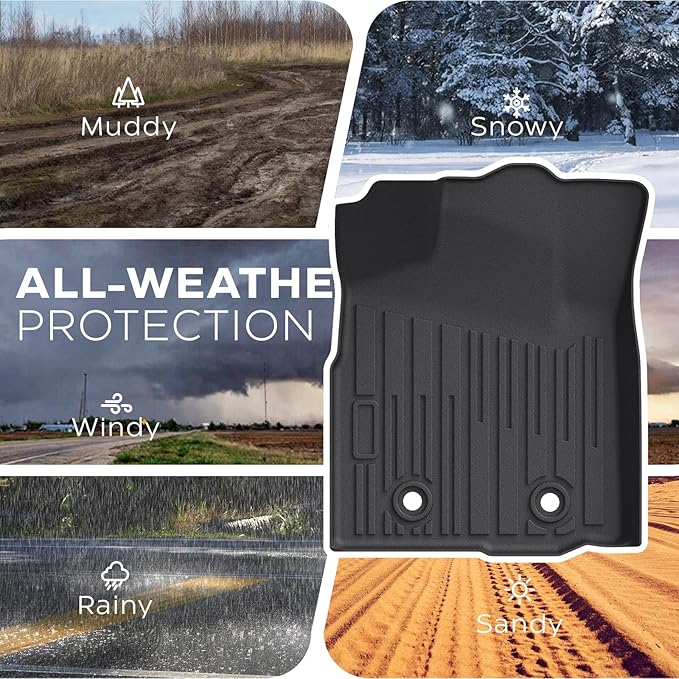 - 【SUPERIOR ALL-WEATHER PROTECTION】Deep channels and high raised edges effectively trap and contain water, road slush, mud, sand, and grime. Integrated anti-slip anchors securely lock the mats in place, preventing any dangerous movement underfoot.