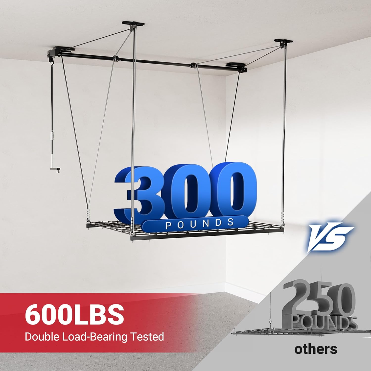 - Maximize Garage Space: The 4x4 feet platform provides the perfect garage storage solution, protecting your belongings while utilizing ceiling space to store seasonal items and unused belongings.