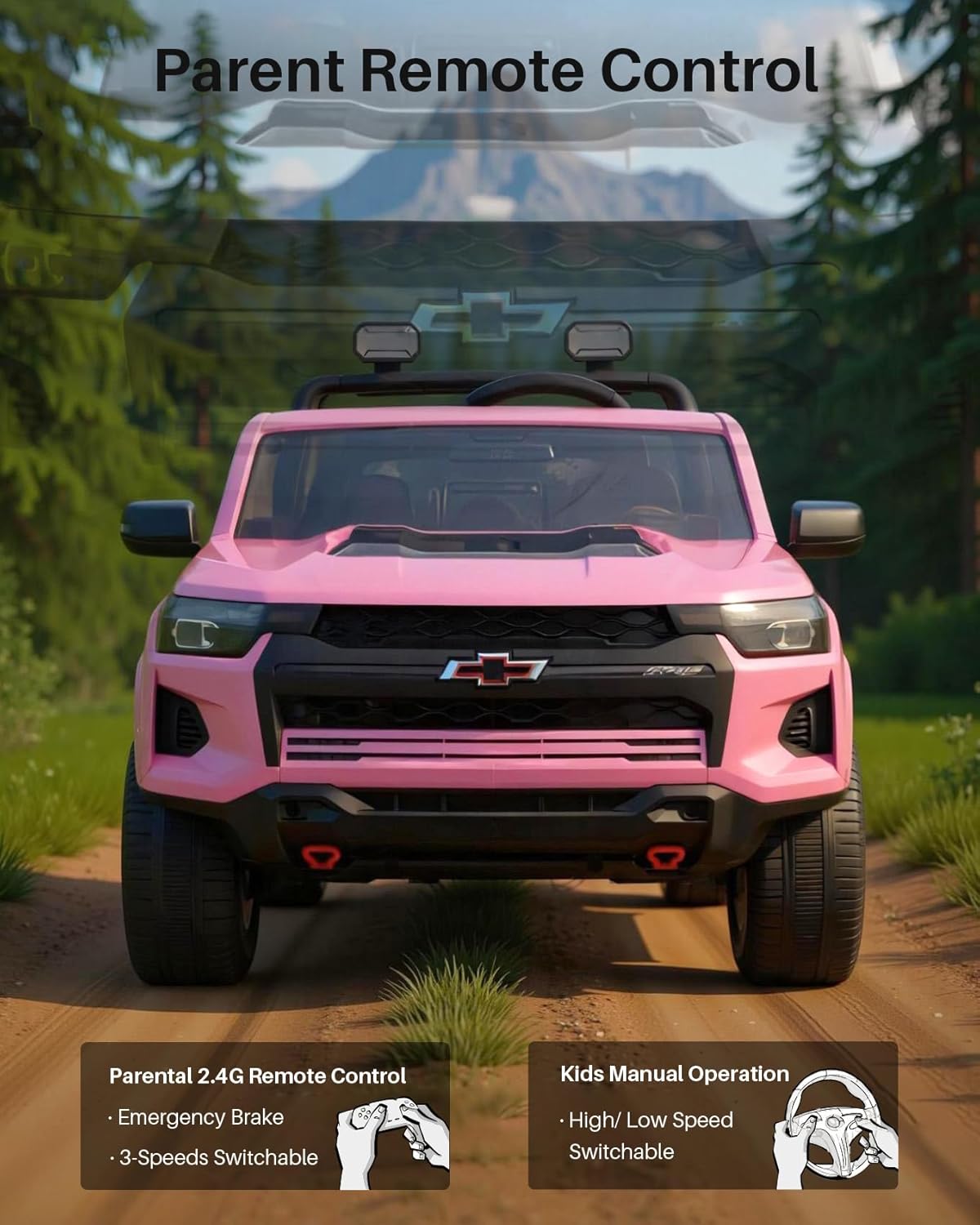 Joywhale 24V Ride on Truck 4WD Kids Electric Vehicle Licensed Chevorlet Ride on car with 7AH Big Battery, 320W Powerful Motors, 2 Seats, Music, 4 Wheel Suspension, 2 Speeds, LED Lights, Rose Red