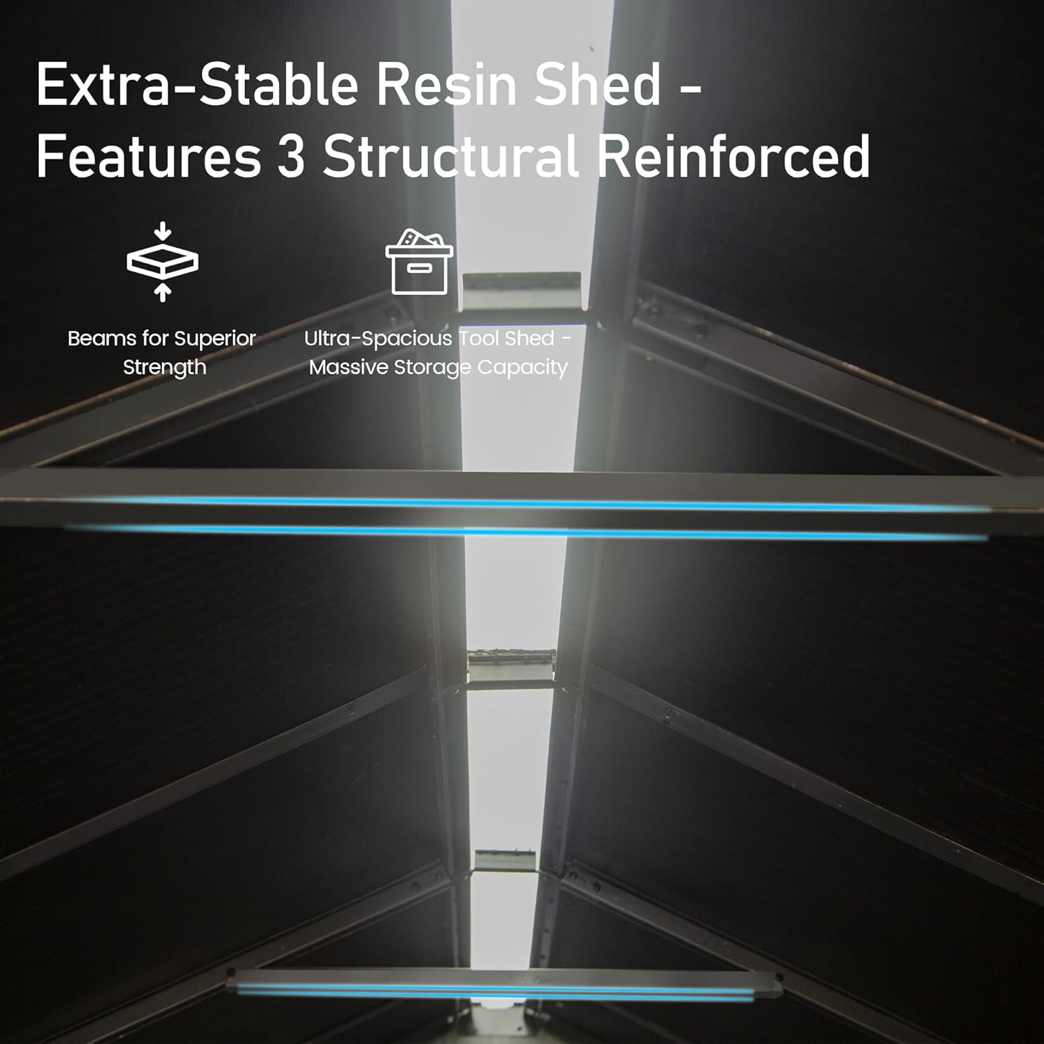 - Durable Double-Wall Resin Construction: Built with reinforced resin panels and interlocking wall connectors for enhanced durability, this shed resists warping, denting, and weather damage—ideal for year-round use.