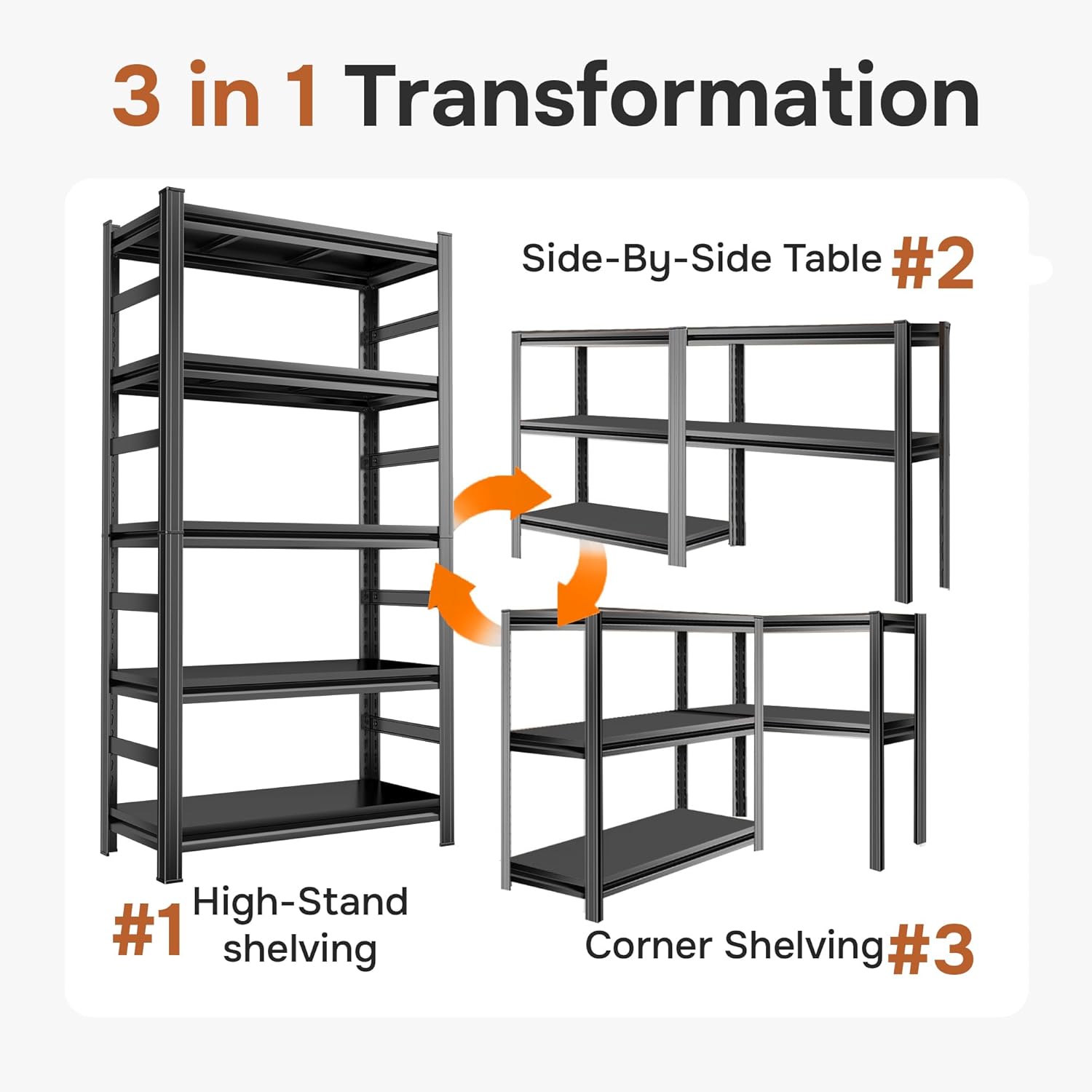 - π VERSATILE 2-IN-1 MODULAR DESIGN β Get two units for the price of one! Use it as a single, towering 71" tall shelving unit to maximize vertical space. Or, in just a few seconds, split it into two independent, workbench-height 35.6" racks. This incredible flexibility makes it the ultimate solution for any space: your garage, warehouse, pantry, kitchen, or even as a retail display. It adapts to your needs, not the other way around.