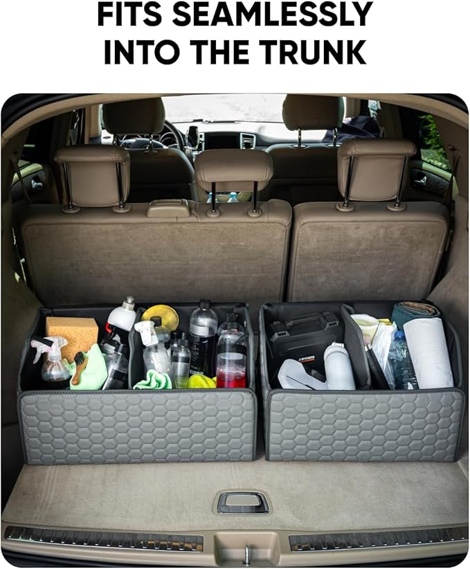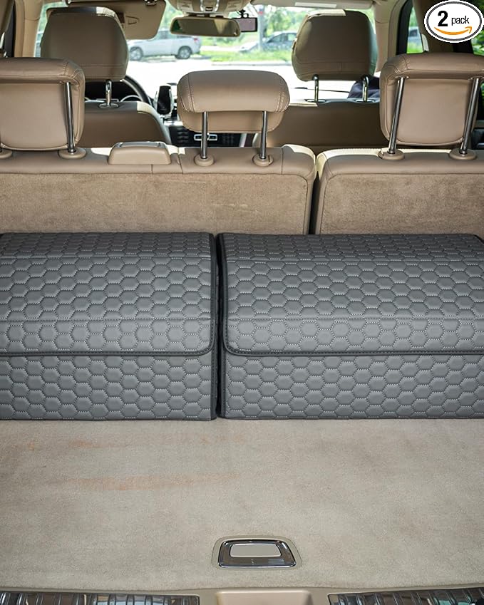 - DOUBLE STORAGE POWER. A practical car tote organizer set with two sizes to cover every ride. Use these car totes as car bins for trunk to keep groceries, toys, and travel gear neatly arranged.
