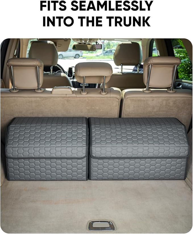 - SUPER EASY TO USE: Our collapsible trunk organizer sets up in just 2 minutes and has strong leather handles for easy transportation. Also, you can effortlessly clean this large trunk organizer for SUV with a damp cloth to remove any dirty stains!