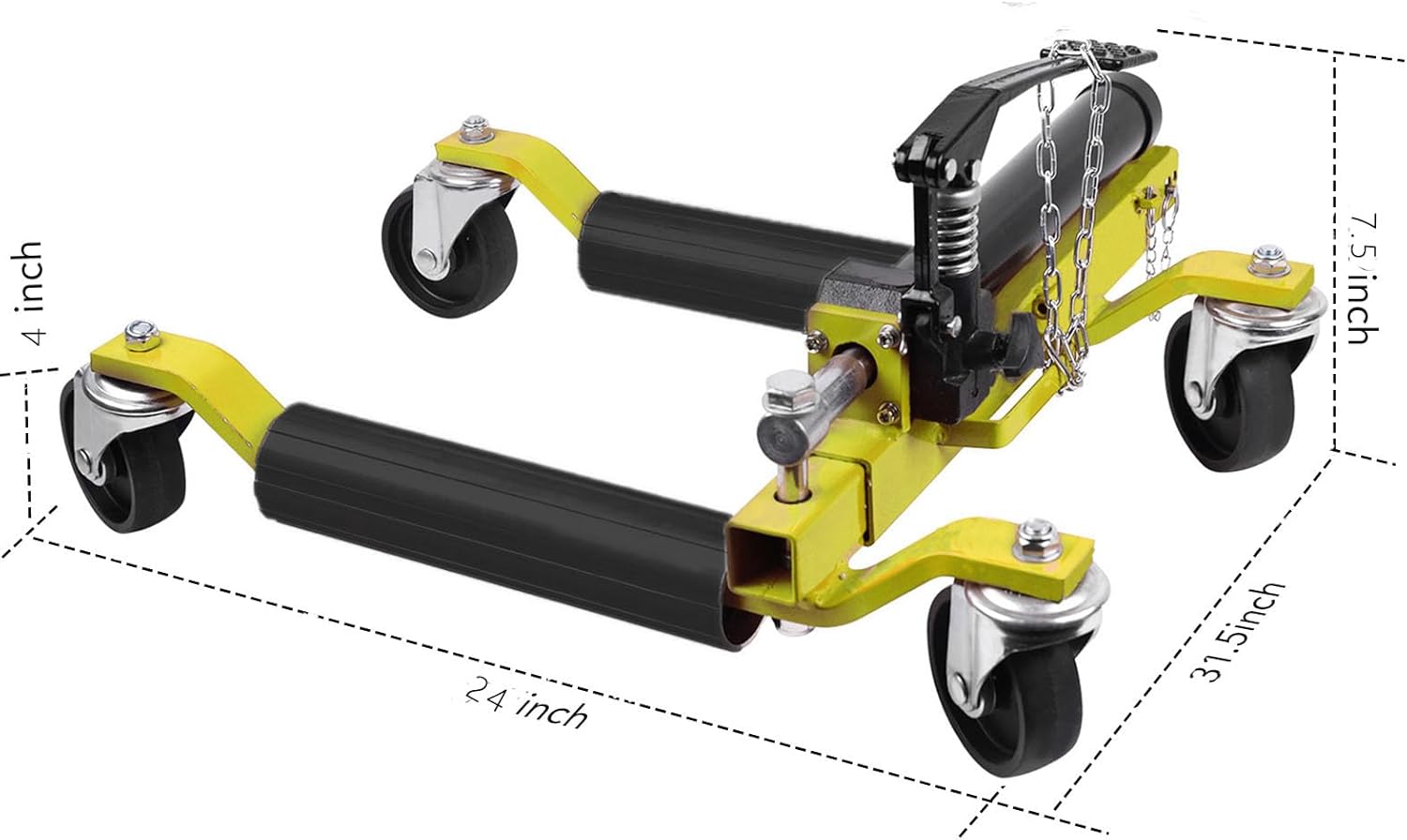 4 Pcs Car Wheel Dolly with Hydraulic Tire Jack, 1500LBS Capacity Trailer Dolly for Vehicle Positioning for Truck RV Trailer, Yellow