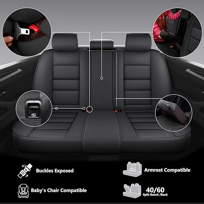 - 【Universal Fit】The car seat cushion fits for Ford,Chevrolet,Buick,Volkswagen,Toyota,Honda,Nissan,Mazda,Mitsubishi,Hyundai,Kia, Jeep,etc... Meanwhile the leather car seat cover full set has a wonderful envelopment with the car seats which can maximize the protection to the seats. We leak out the air bags, so once an accident occurs, the air bags still work.And the leather is breathable so that the cover will not affect the function of heating or cooling in your car.