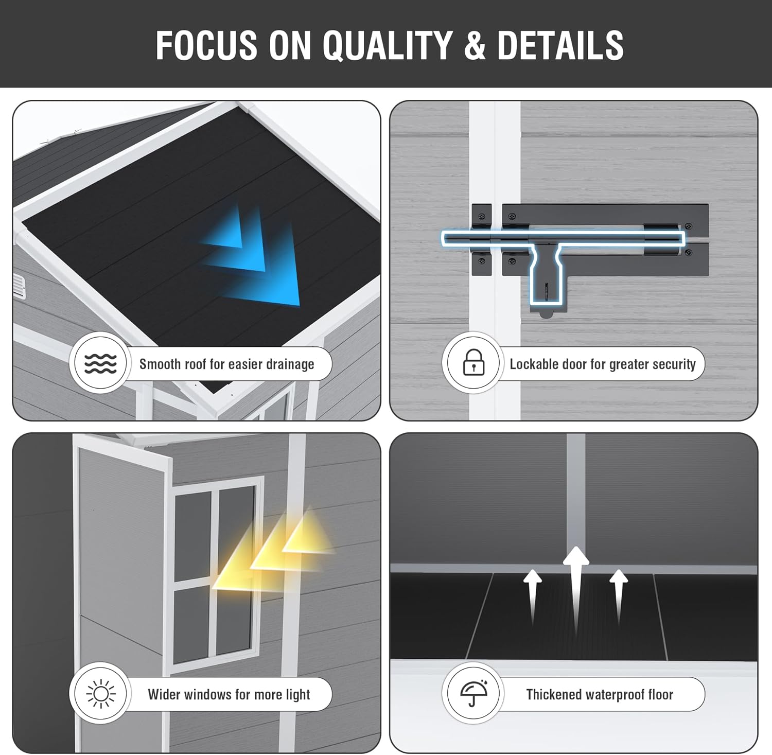 - đ ăAll-Weather Resin DurabilityăCrafted from high-quality plastic resin, this resin shed is built to handle rain, snow, and sunlight with ease. The waterproof and UV-resistant exterior helps protect your stored items all year long, while the reinforced double-wall panels add strength and thermal stability for lasting outdoor performance