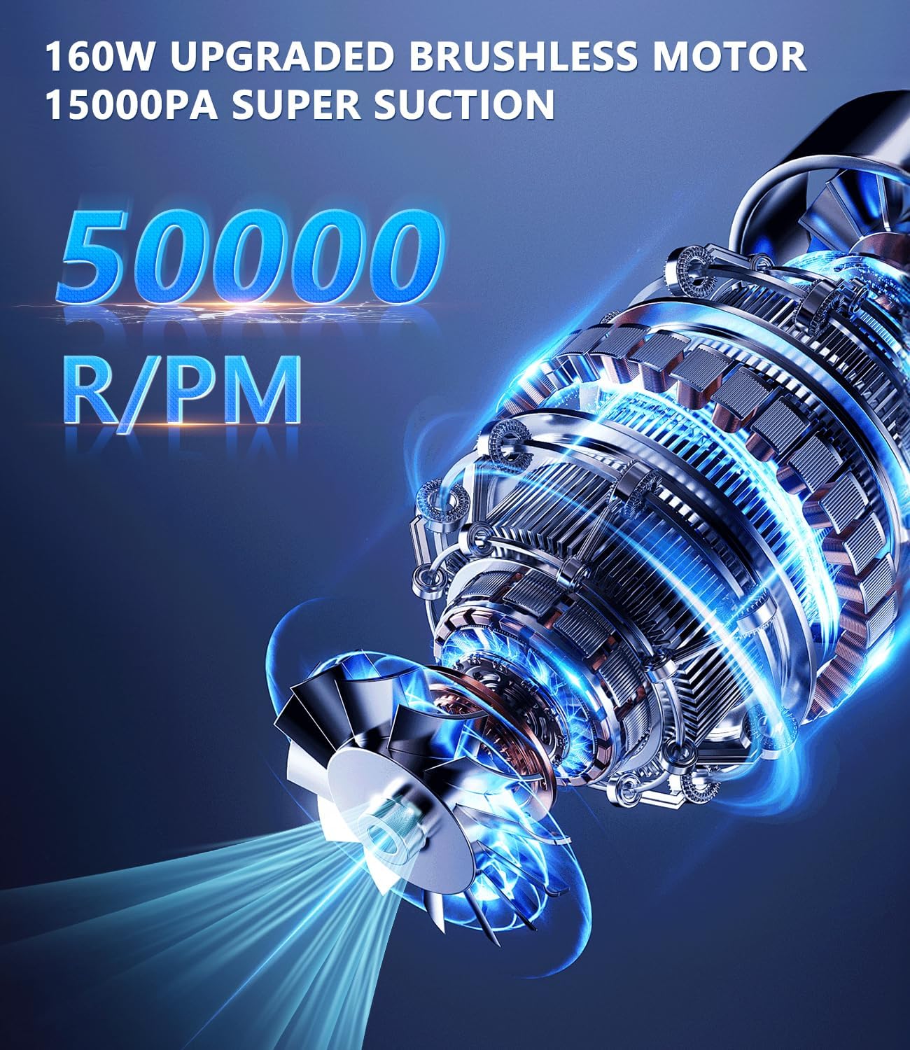Handheld Car Vacuum Cordless, 18000Pa 160W Car Vacuum Cleaner,30Min Powerful Hand Held Vacuum Cordless Portable Vacuum Cleaner