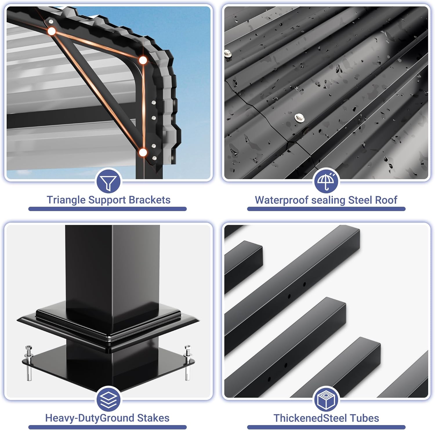 - 【High Quality Thick Gauge Material】Featuring 2-inch powder-coated steel tubing and three layers of rustproofing, it is extremely weather-resistant. Critical joints are reinforced for unrivalled strength and long-term durability.