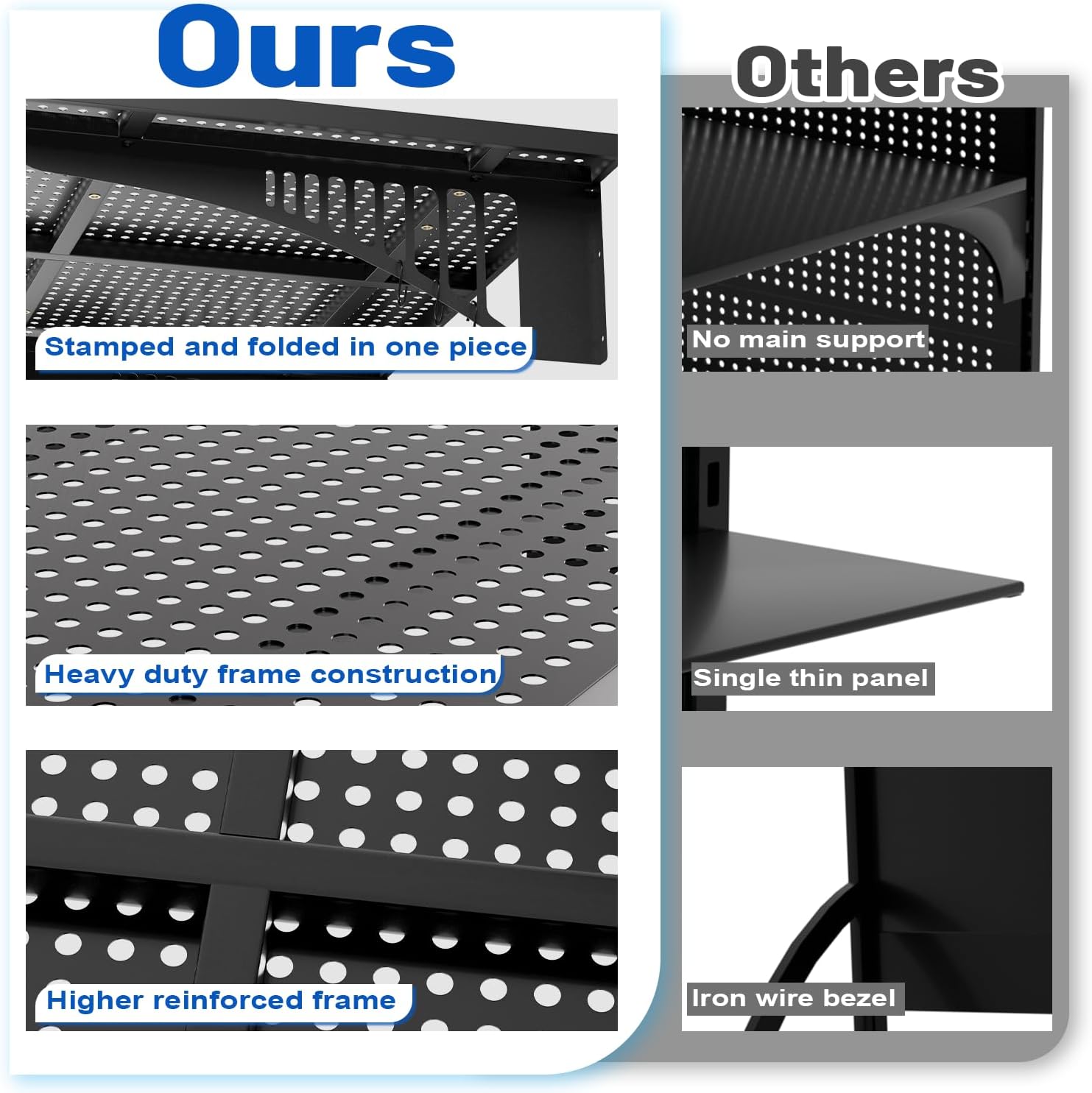 - Rigorous Load Testing: Rigorously tested to support a total weight capacity of 500 lbs across two shelves, providing unmatched strength for heavy items like tools, bins, or equipment, with no bending or warping under stress.