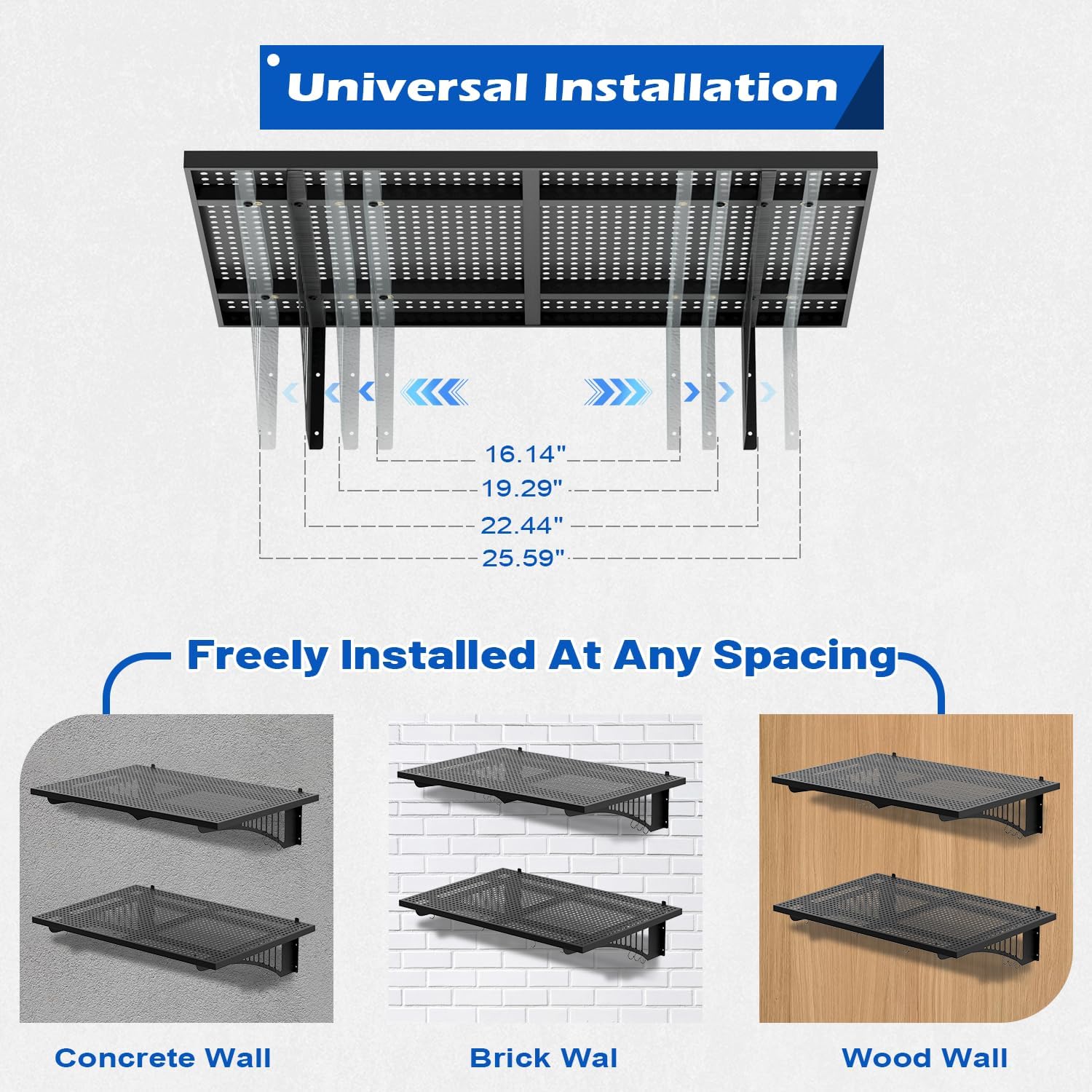 - Versatile Wall Compatibility: Designed for secure mounting on both wood studs and brick/concrete walls, eliminating compatibility issues and ensuring stable installation in diverse environments like garages or warehouses. Ideal for garages, basements, laundry rooms, warehouses.