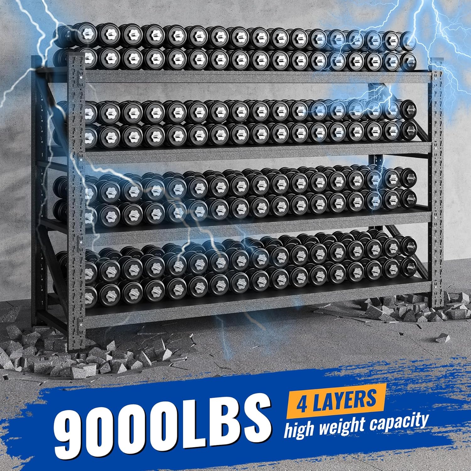 - Excellent load-bearing: Heavy-duty shelving use high-quality steel, thickened process, and scratch-resistant surface. The shelves can bear about 9000 pounds as a whole, which can not only meet the storage of small items, but also store some heavy machinery and industrial materials.