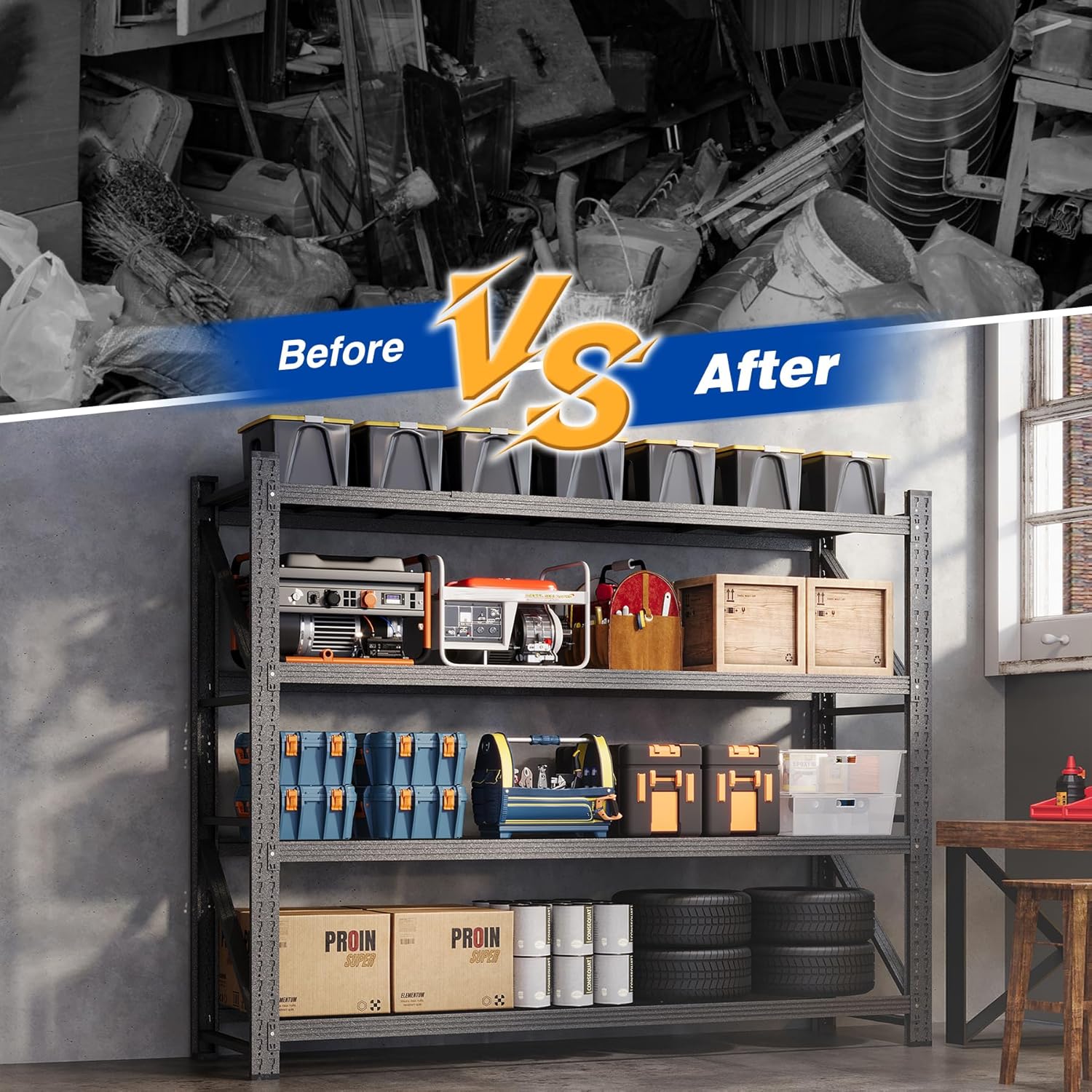 - Extra large product size: The heavy-duty shelving are 78.8"W X 24"D X 78.8"H and have been widened and upgraded horizontally. They have an extra-large width of 78.8 inches, which can store more items and are suitable for more usage scenarios, such as garages, factories and warehouses, etc.