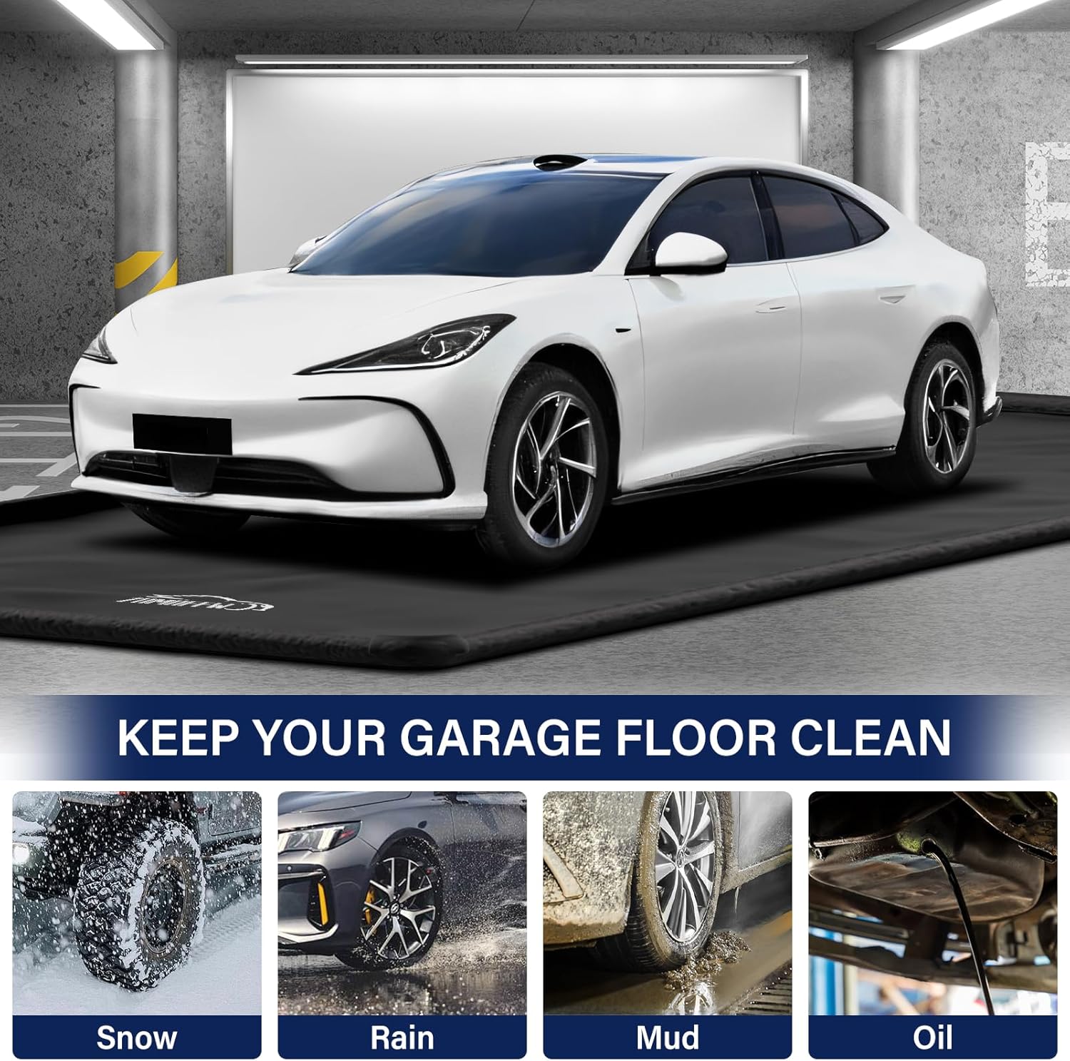 - Say goodbye to garage mess! Our high-performance garage mat is your vehicle's ultimate protector. It effectively prevents snow, slush, mud, oil, and chemicals from contaminating your garage floor, keeping it clean year-round. It's the perfect solution for winter storms and rainy seasons, giving you peace of mind.