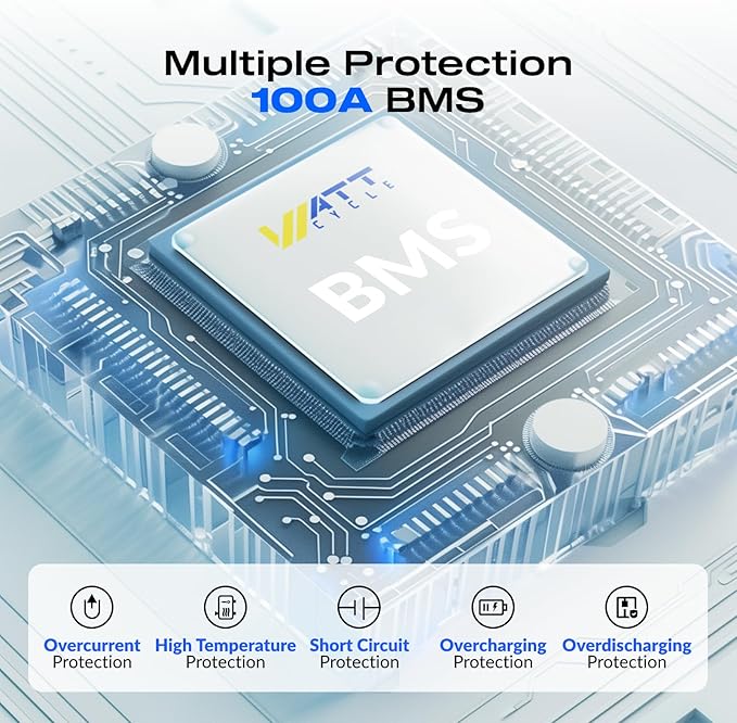 WattCycle 12V 100Ah LiFePO4 Battery BCI Group 24-15000 Cycles, Built-in 100A BMS, Low-Temp Protection for RV, Solar System, Marine, Golf Cart, Trolling Motor, Home Energy Storage, Off-Grid
