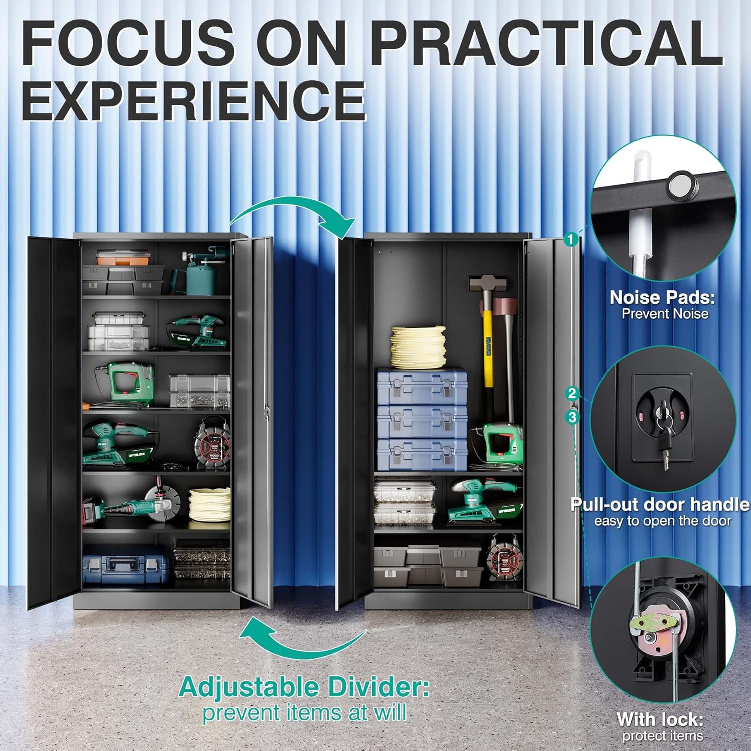 SISESOL Wide & Deep Metal Storage Cabinet with Lock & 5 Adjustable Shelves,72" Black Garage Storage Cabinet with Locking Doors,Lockable Cabinets for Home,Office,Garage,Shop,Basement 72x36x18