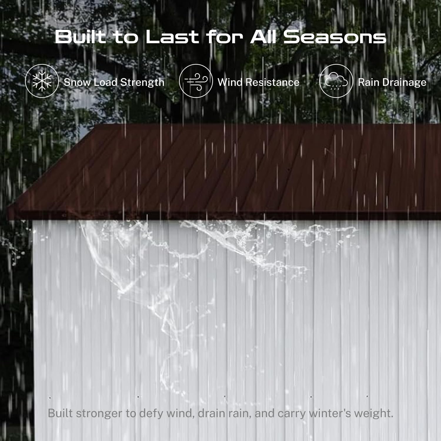 - ā [Sloped Roof for Superior Weather Protection] Designed for real-world conditions, the efficient sloped roof system guarantees optimal rainwater drainage, preventing damaging pooling and leaks. This key feature in our storage buildings and sheds clearance design minimizes maintenance and ensures your tools, equipment, and belongings stay consistently dry inside