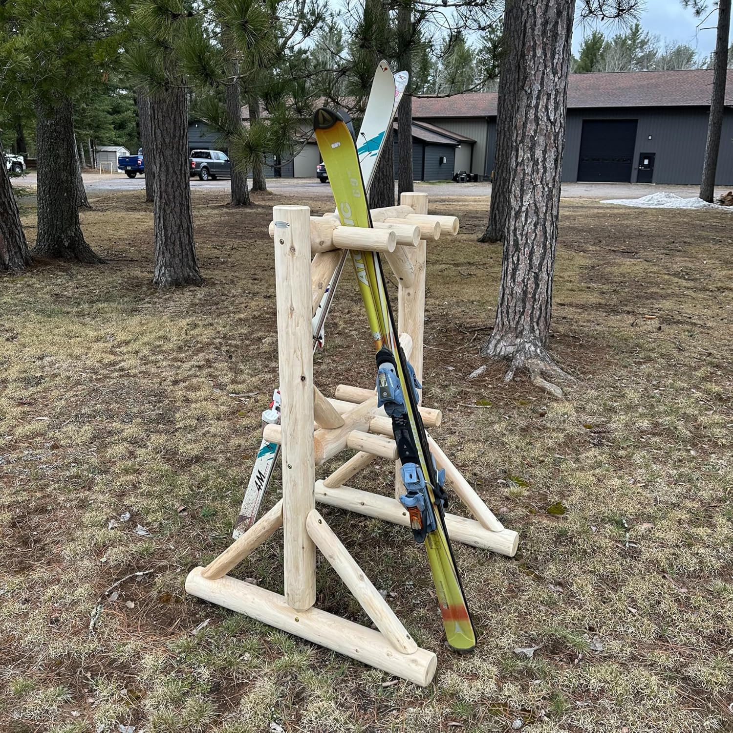 - HANDMADE IN NORTHERN WISCONSIN BY LOG ARTISANS: Each rack is handcrafted in Wisconsin by skilled log artisans with decades of experience. Designed for reliable ski storage rack for garage or outdoor use, it reflects attention to detail and durable construction. Proudly made in the USA, it’s a fitting choice for anyone needing a dependable ski holder, snowboard stand, or custom-built ski and snowboard storage system for their home or lodge.