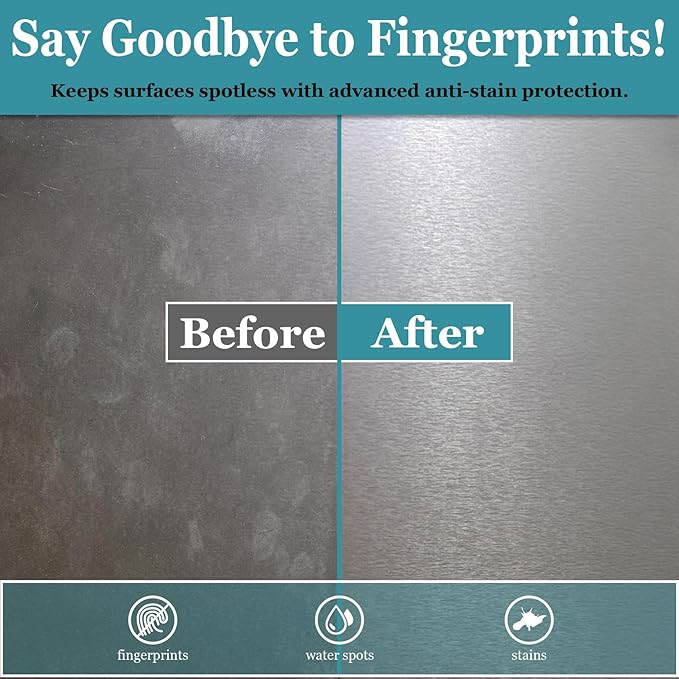 - Prevents Fingerprints and Smudges: Keep your stainless steel appliances, countertops, and hard surfaces spotless with this advanced ceramic coating. Creates a hydrophobic layer to repel stains, smudges, and fingerprints, leaving a silky-smooth finish.