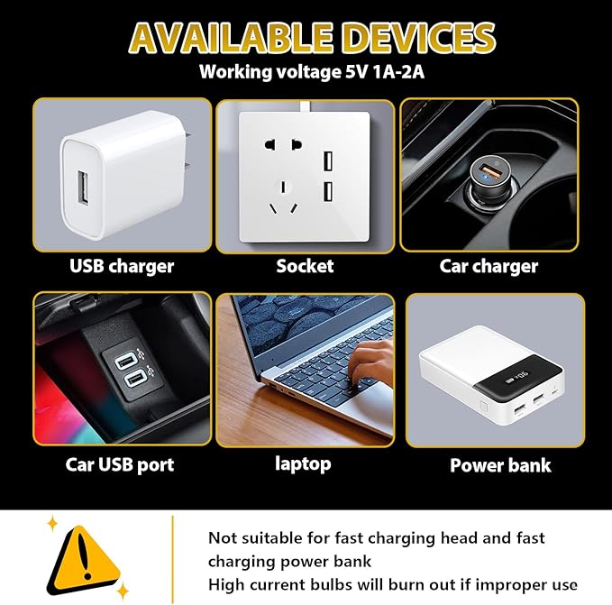 - 【Wide Application & Portable Design】Easy to carry, instantly creates a cozy or festive atmosphere wherever you go. Compact and portable USB lamp for car decorations interior, home décor, camping, hiking, and parties. Note: Use standard 5V 1A/2A adapter only—fast chargers may damage the usb light.