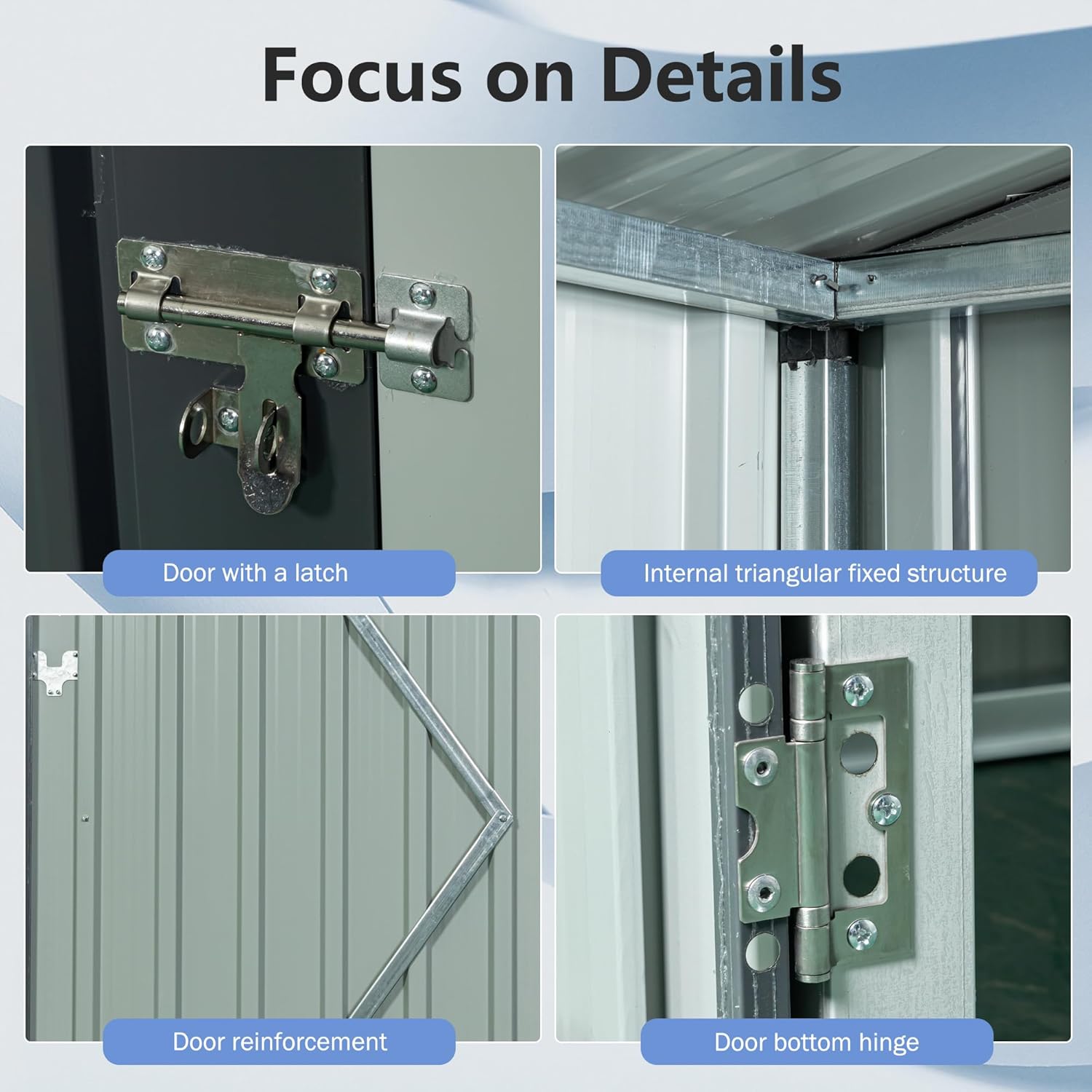 - Durable and Stable Shed: Durable construction and thickened galvanized steel make this durable, lifelong storage shed rust- and UV-resistant. Overlapping wall panels are waterproof and moisture-resistant, giving you peace of mind in all weather conditions.