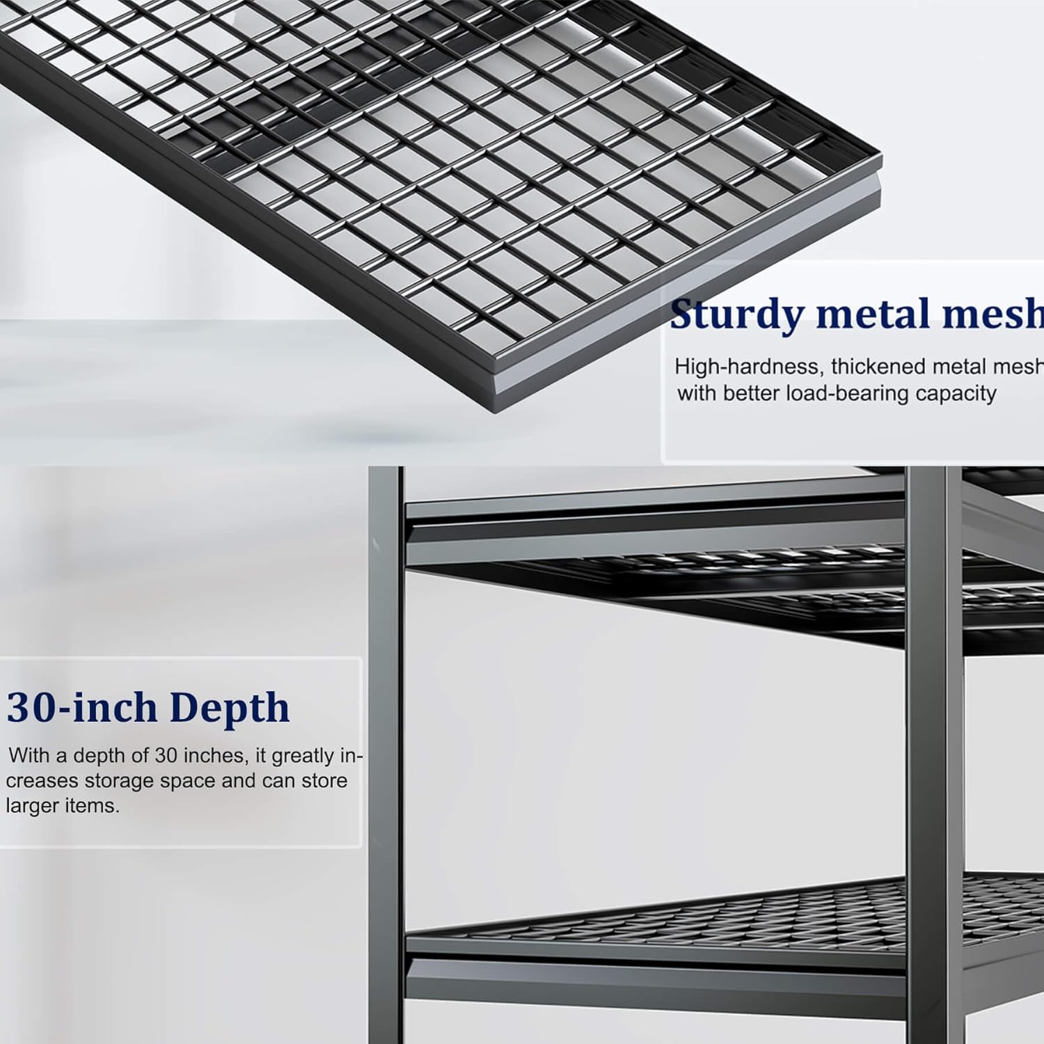 - 【Specially Designed Shelf 】This black heavy-duty shelving uses thickened steel, thickened panels, and a double-layered thickened column structure. The entire column requires no connectors, ensuring long-term durability.
