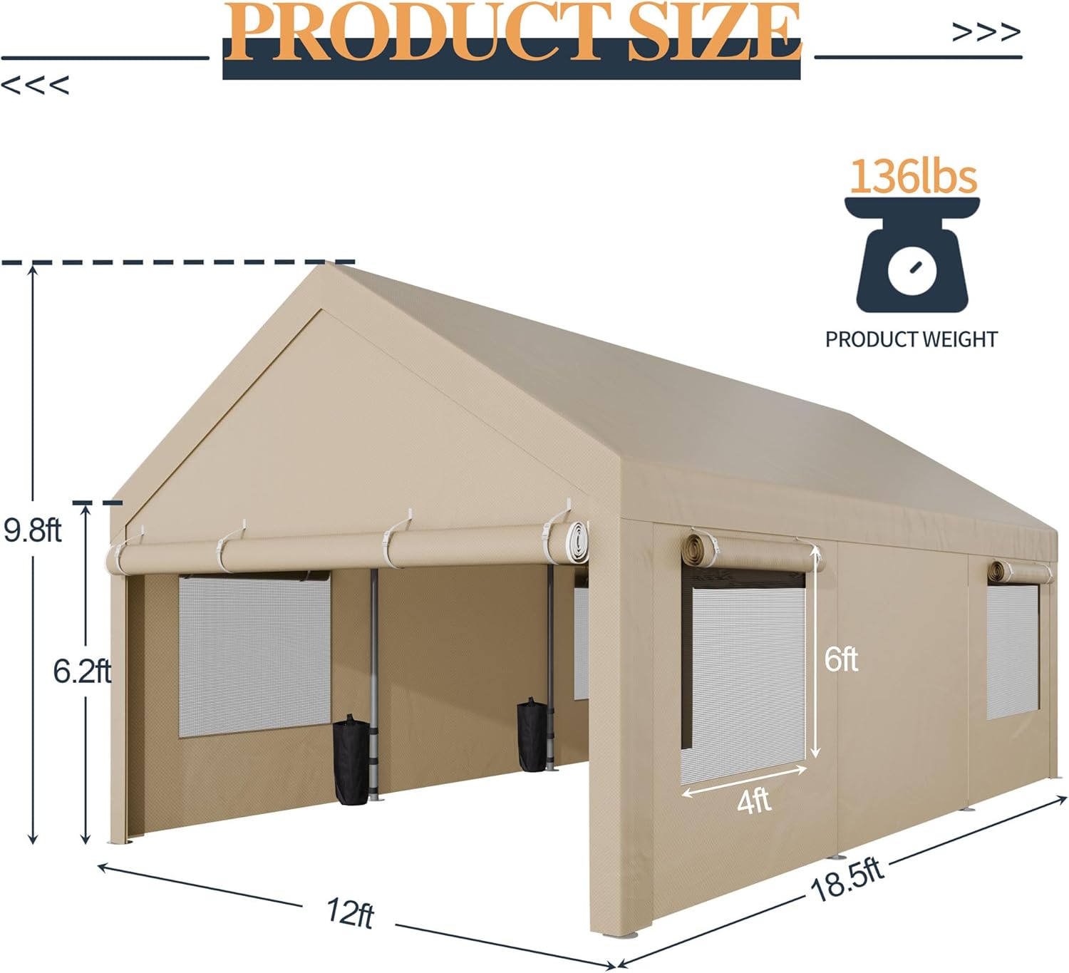 - 【Larger Carport】: The 12x20 heavy duty carport provides plenty of space for your vehicles, boats, cargo, etc. Detachable side walls and doors to meet your needs. It is suitable for outdoor events like parties, weddings, commercial fairs.