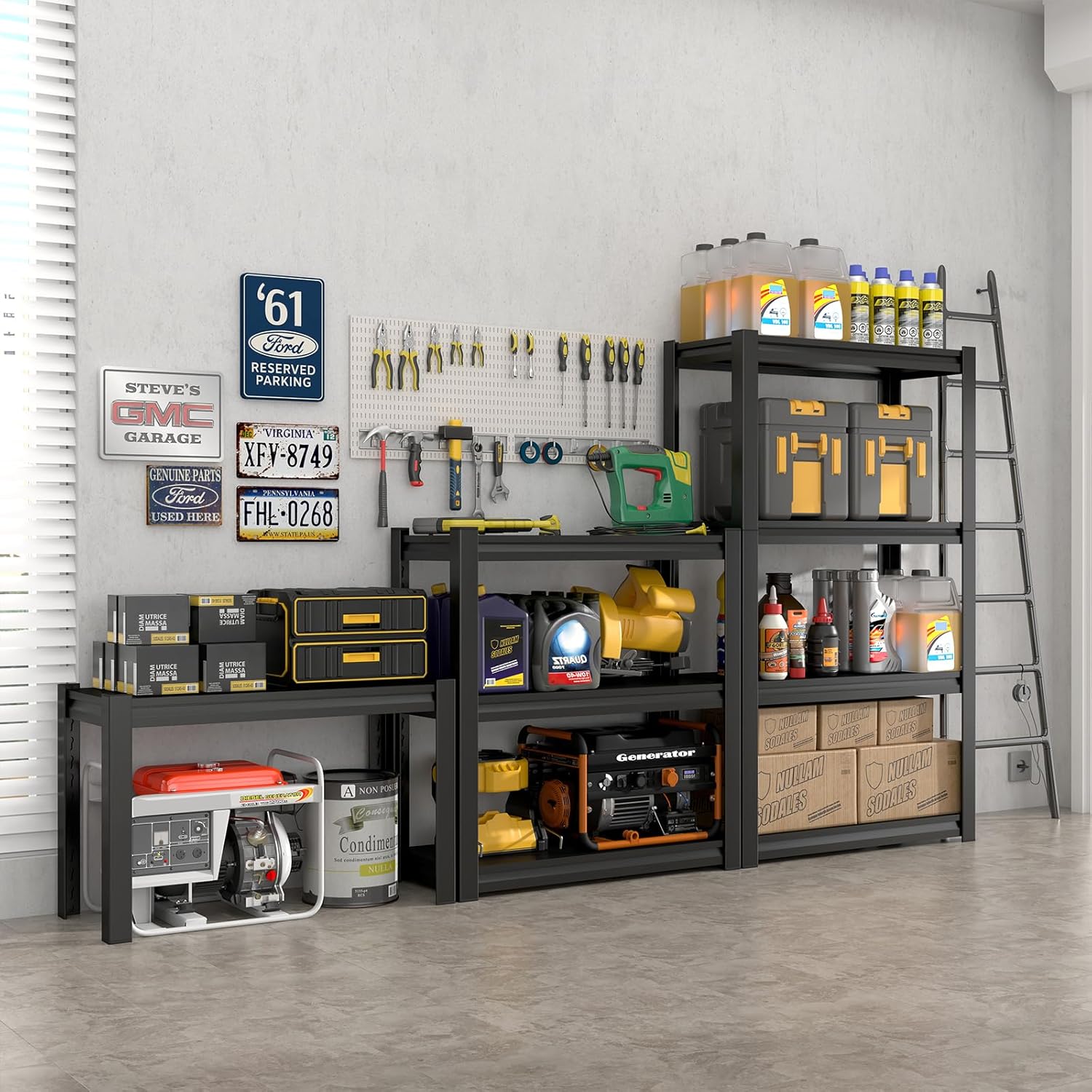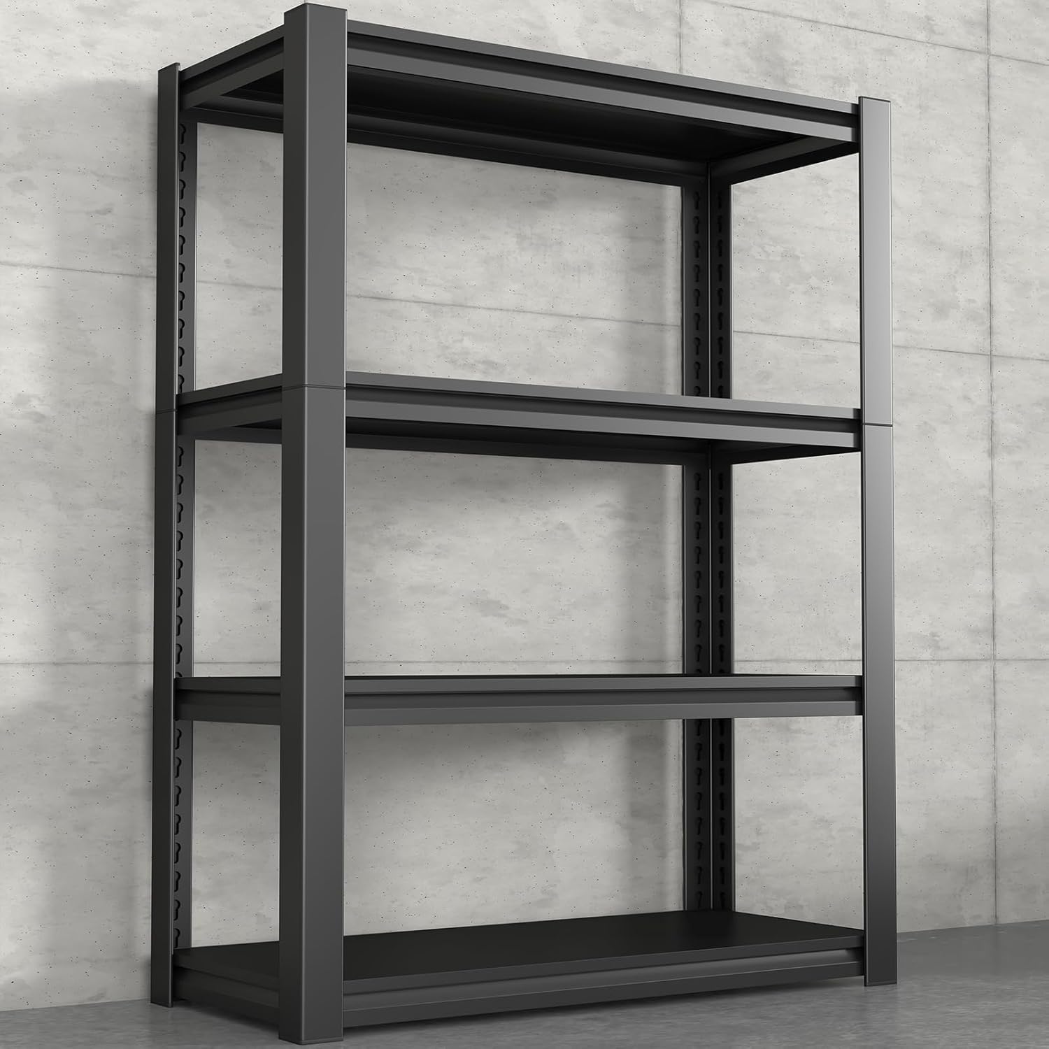 - ăDurable QualityăThis garage storage racks is made of thickened metal material. Each shelf can easily support 250 pounds, with a total load capacity of 1,000 pounds. The sturdy design allows the metal shelving unit to securely hold various heavy items, helping you keep your space neat and organized.