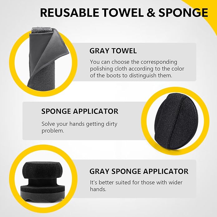 - HANDHELD GRAY SPONGE: Bigger than traditional sponges, it's better suited for those with wider hands. It's also ergonomically designed for a comfortable grip. Just apply a small amount of mink oil.