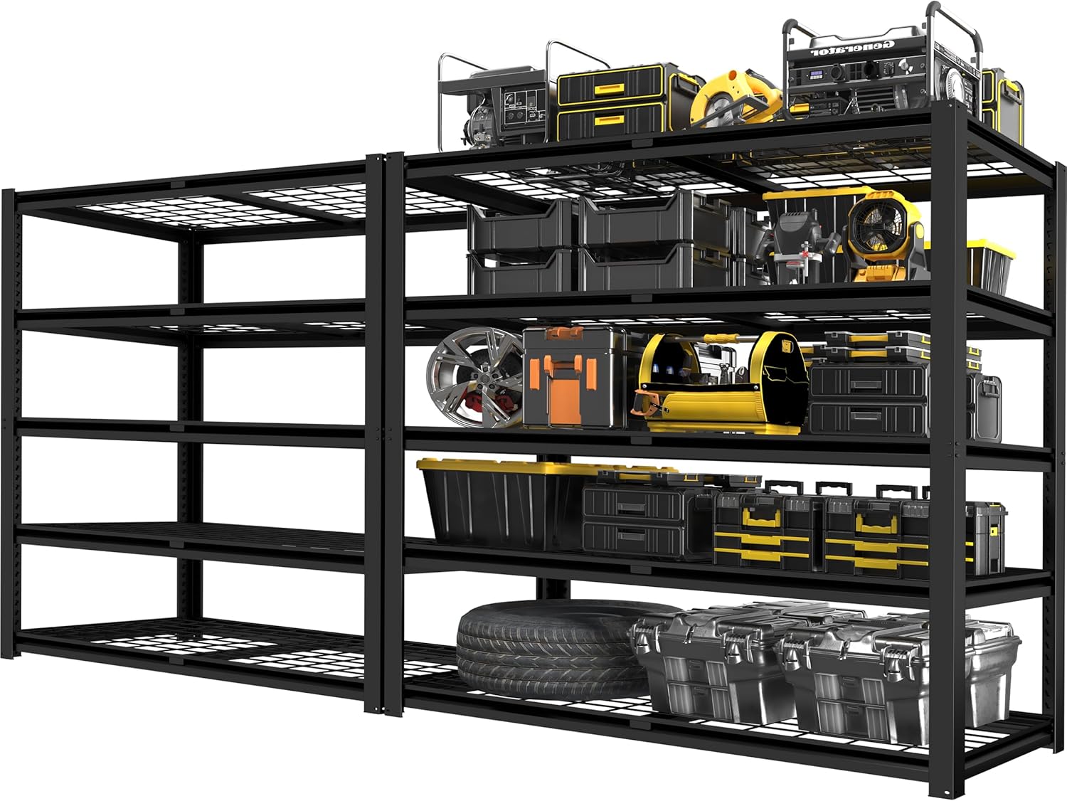 PrimeZone Heavy Duty Storage Shelves - 48" W X 18" D X 72" H Adjustable Garage Wire Shelving Unit, 5 Tier Industrial Metal Shelf Standing Utility Rack for Warehouse, Pantry, Basement, Black, 2 Pack