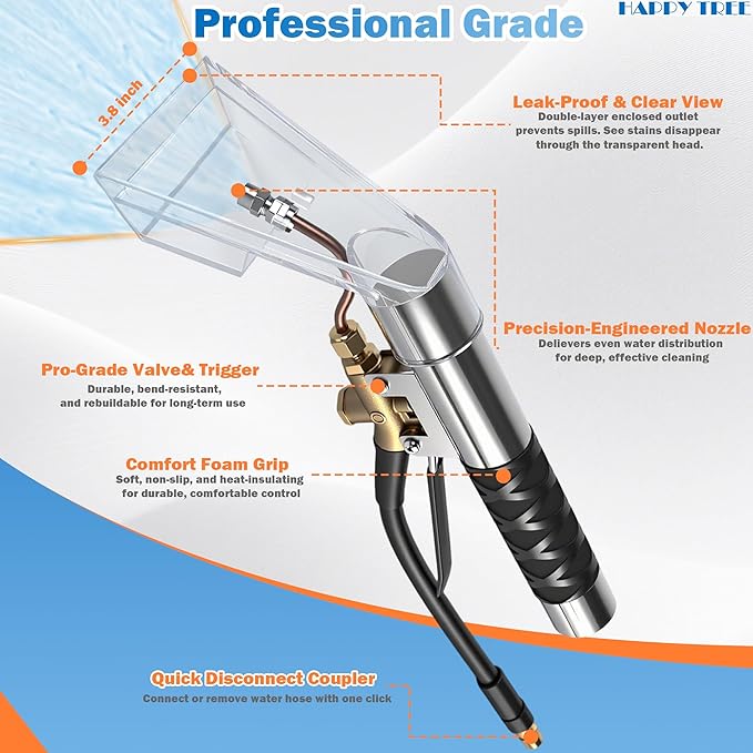 - 🍏UNBREAKABLE CLEAR HEAD – Exclusive formula and design make our transparent shampoo head is unbreakable. So you can continue to use it on tons of indoor and auto projects. The see-through head allows you and your customers to see the dirt being cleaned off their upholstery and view your dirty recovery work. So you can see how effective and efficient it is at removing stains and dirt in real time. The 3.8" head greatly accesses hard-to-reach areas like car interiors, pet beds, stairs & all those other narrow to reach places