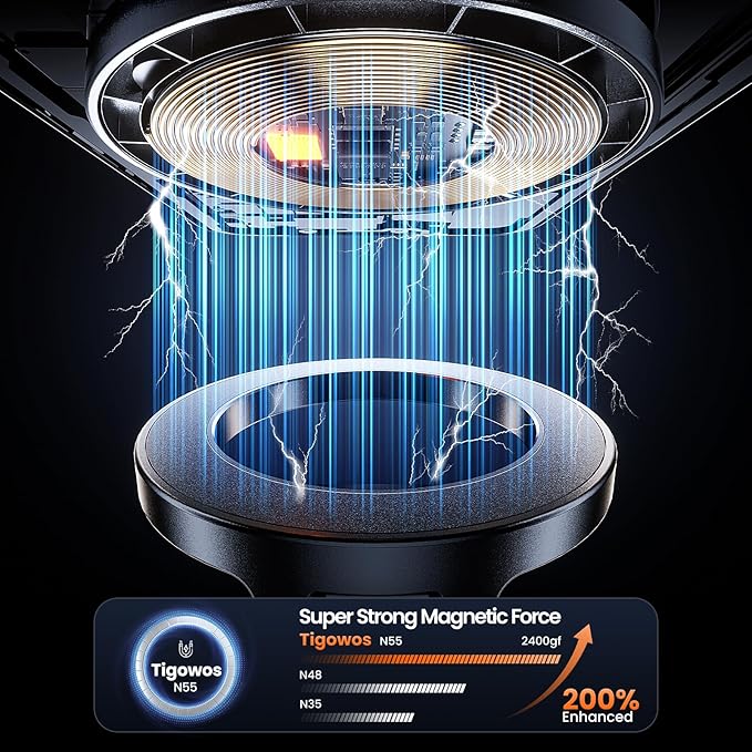 - Double Coil N52 Strong Rubidium Magnet This vacuum magnetic phone holder has a double-layered magnetic ring (1:1 circular pattern) for stable attachment. It also works as a practical magnetic suction phone mount—with a powerful N52 magnet, its 18N force (2400 GF equivalent) on this magnetic phone suction mount passed 8000 vibration tests & extreme roads, keeping phones firm on brakes/turns/bumps.