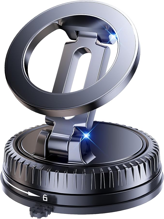 - Multi-Scene Use This pocket-sized foldable mount fits in small bags/pockets for easy carrying, and features a vacuum twist lock (reverse twist to unlock, effortless removal) – it stays steady even after repeated detaching. Far more than a cell phone stand for car dashboard, windshield & center console screen, it doubles as a gym magnetic phone holder, mirror phone holder, and practical magnetic holder for kitchen, office & other indoor spaces.