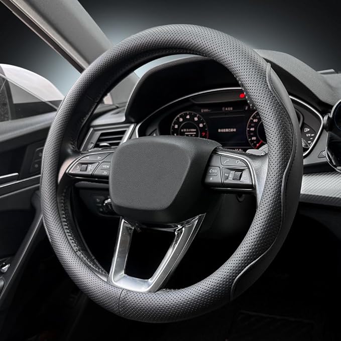 LKWLIKEI Nappa Premium Leather car Steering Wheel Cover, Non-Slip, Breathable, Universal 15 inches
