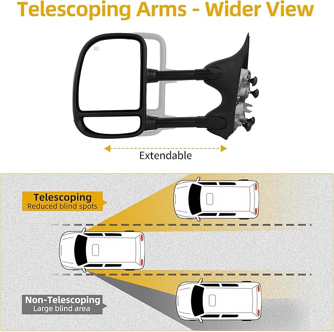 - Manual Folding & Telescoping Design: Designed with manual folding and telescoping capabilities, making it easy to extend for towing and fold in for convenient parking or storage.