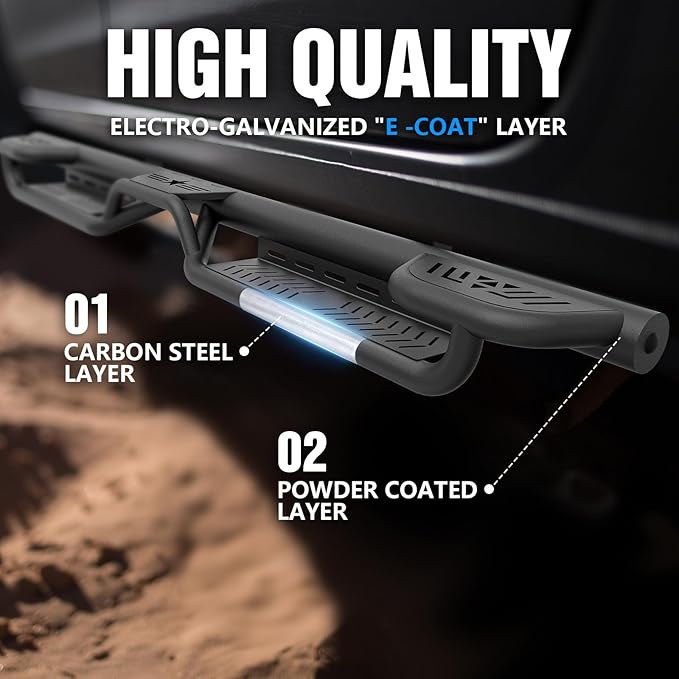 - 【Robust and Durable】: The high-quality black powder coating provides outstanding rust and corrosion resistance. Constructed from heavy-duty 2mm carbon steel, each side can withstand a weight of 550 pounds. Precision laser cutting and stamping techniques contribute to a non-slip step surface and enhanced traction.