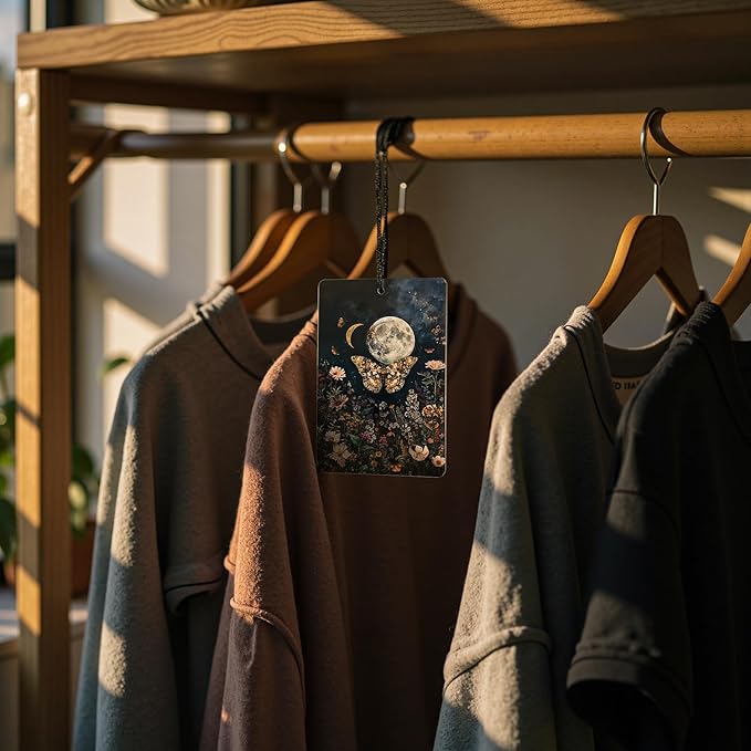 Vintage Dark Floral Witchy Moth Moon Butterfly Car Air Freshener 3 Pcs, Dark Cottagecore Botanical Hanging Air Freshener for Cars Closet Drawer Books, Gothic Flower Car Accessories for Women