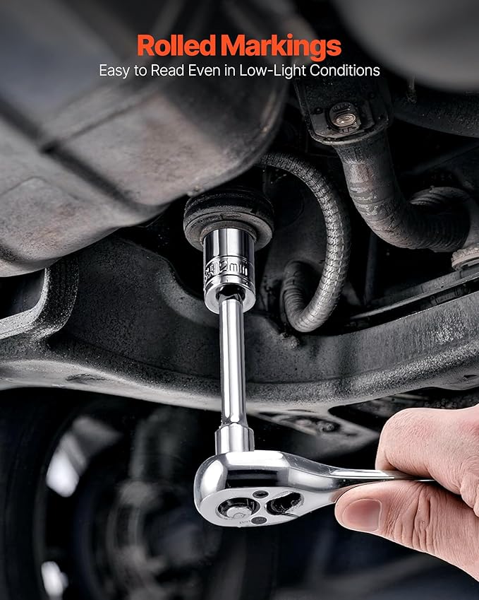 - Easy-to-Read Sizes: Size markings on the socket tool set are precision-rolled for clear, raised engraving, allowing quick and accurate identification by sight or touch—even in low light or greasy conditions—greatly improving work efficiency